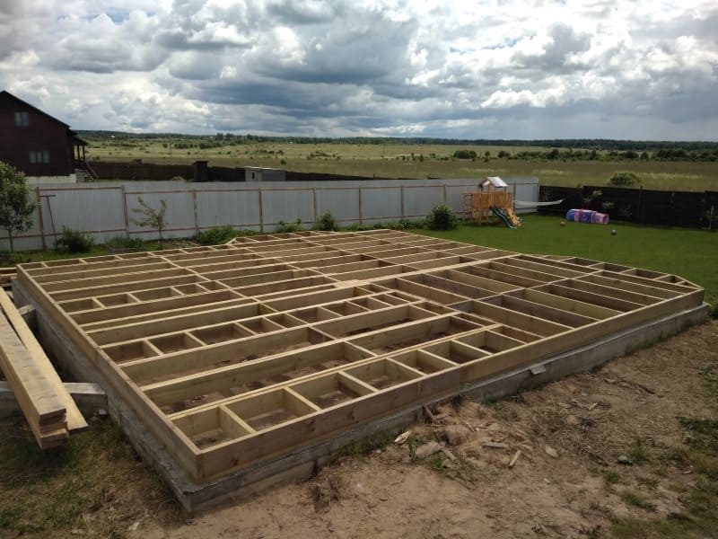 Каркасные дома легче кирпичных, что даёт возможность не возводить мощные и дорогие фундаменты. Рекомендуемая высота фундамента от уровня земли не менее 600 мм, что сводит к нулю попадания влаги внутрь строения и уменьшает намокание конструктивных элементов дома, что ухудшило бы их свойства. Самые распространённые фундаменты для таких домов – винтовые сваи, монолитно-ленточный, плитный, комбинированный – сочетает в себе конструкции разных фундаментных форм.