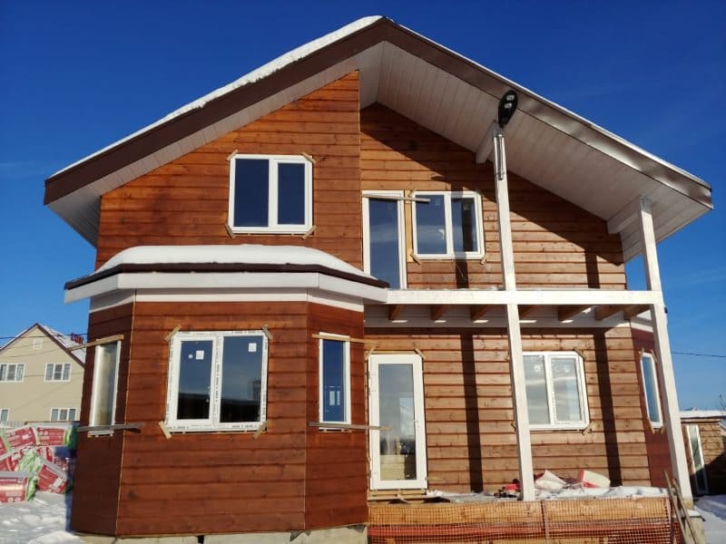 Распространенные виды материалов для наружной отделки каркасных домов: сайдинг, фасадные панели, блок-хаус, имитация бруса, вагонка или комбинация разных материалов.